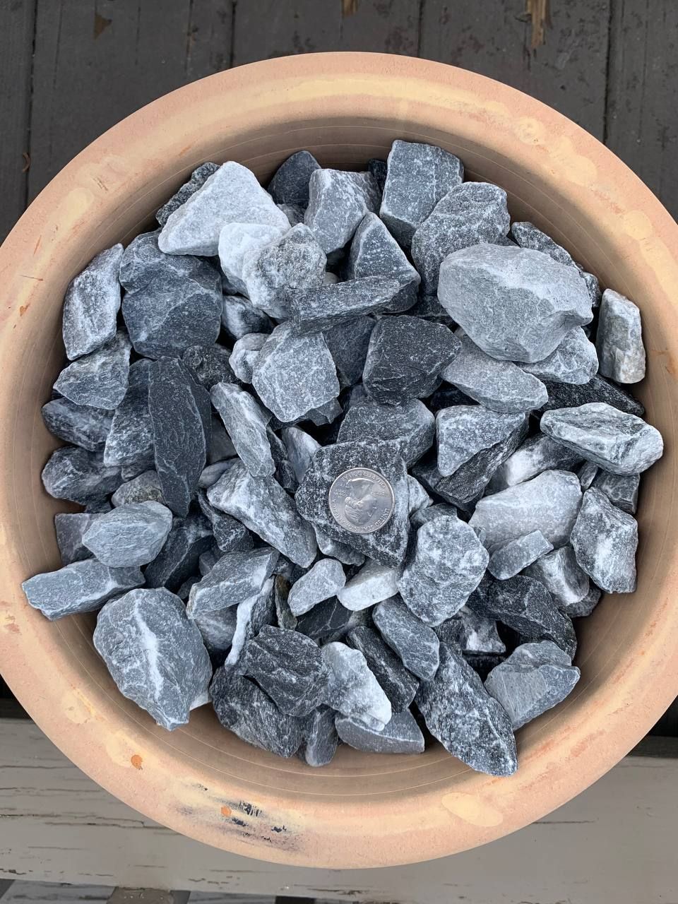 Looking for high-quality natural stones that you can order and have delivered straight to your doorstep? We offer a wide selection of beautiful stones that are perfect for enhancing the beauty and functionality of any outdoor space. And to help you get a better idea of the size of our stones, each image below includes a quarter coin for reference. So whether you're looking to add a natural stone border to your garden or create a stunning walkway, we have the perfect stones for your project.